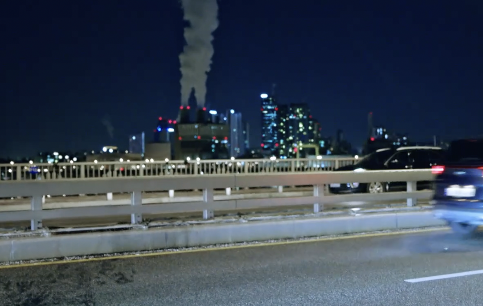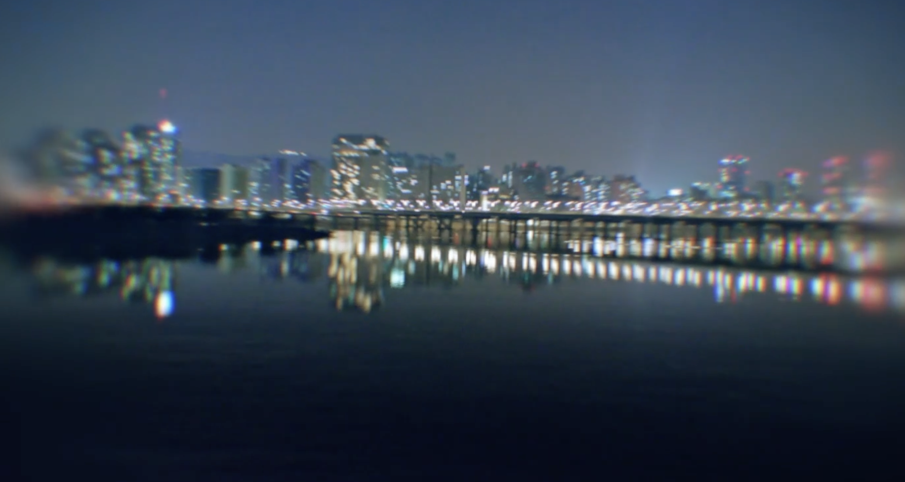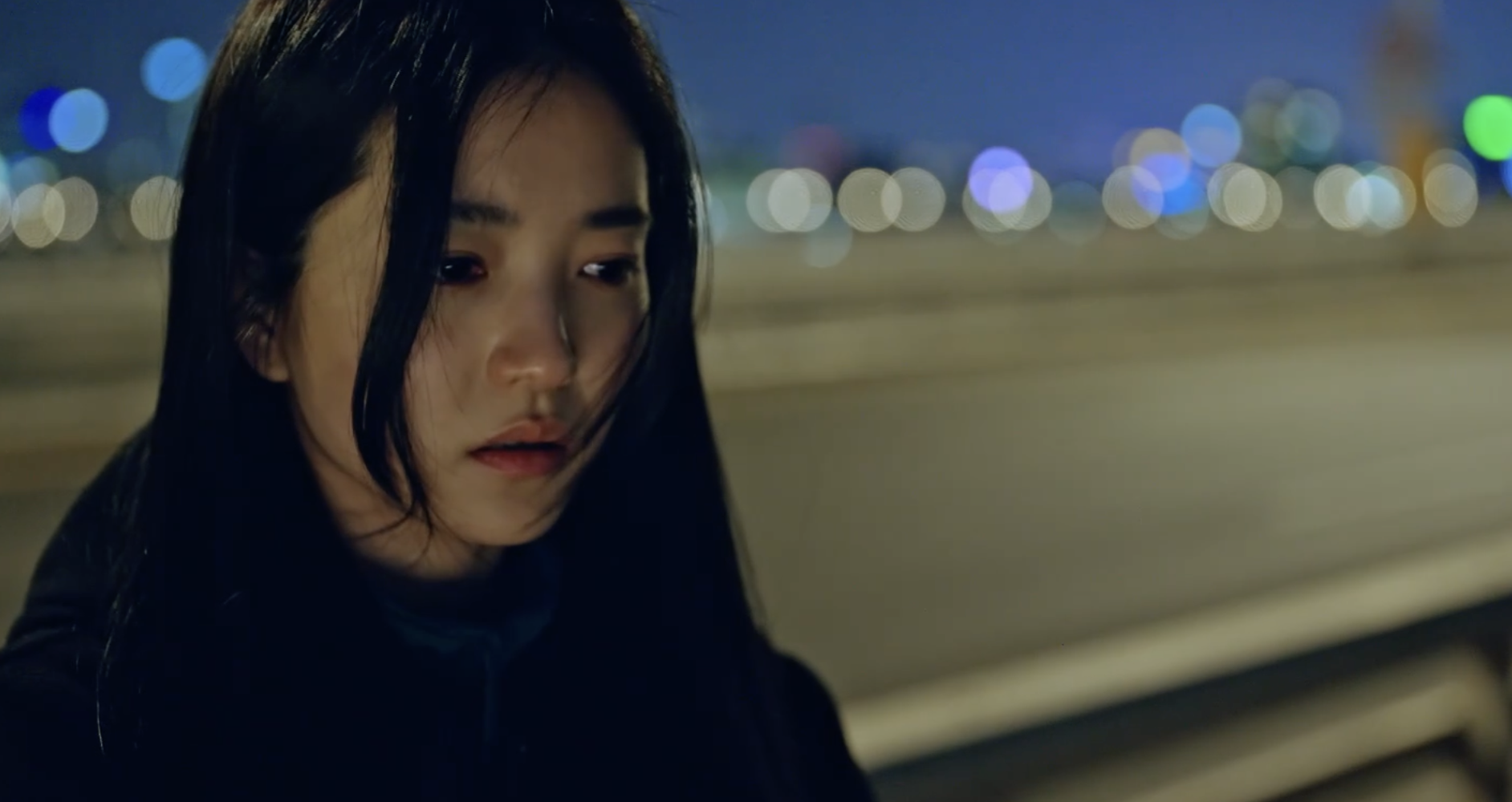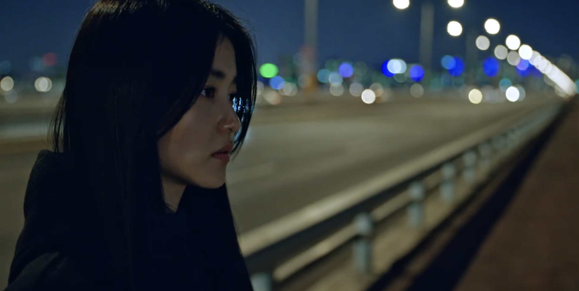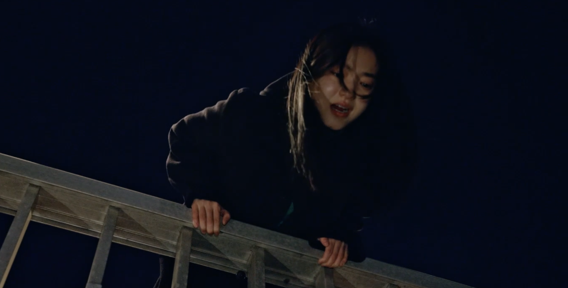 서강대교 다리에서 우두커니 서 있는 구산영. 다리위에 올라서 입을 벌리는 이상한 행동을 한다.