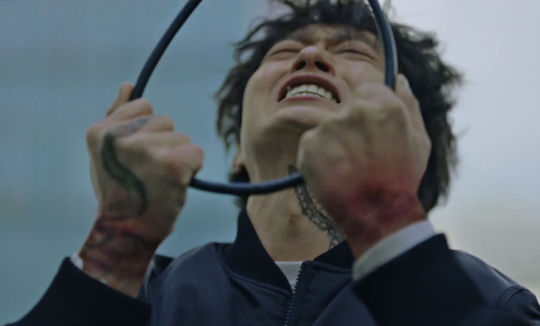 말리려고 뛰어가는 염해상. 그림자로 뒤덮인 남자는 뛰어들고 사람들의 비명소리가 들린다.