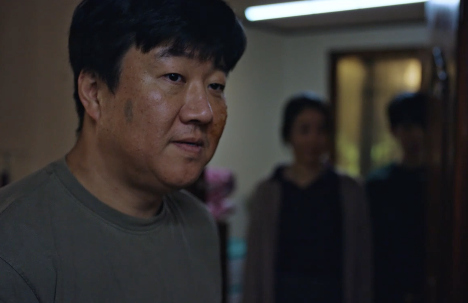피흘린 모습으로 문 앞에 서 있는 죽은 현우.