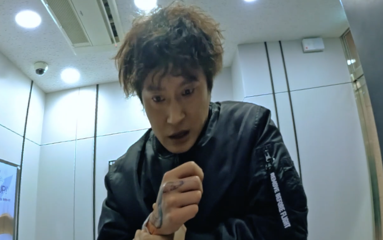 겁을 먹고 급하게 들어와 문을 닫는 강모. 다급하게 가방에서 뭔가를 꺼낸다.