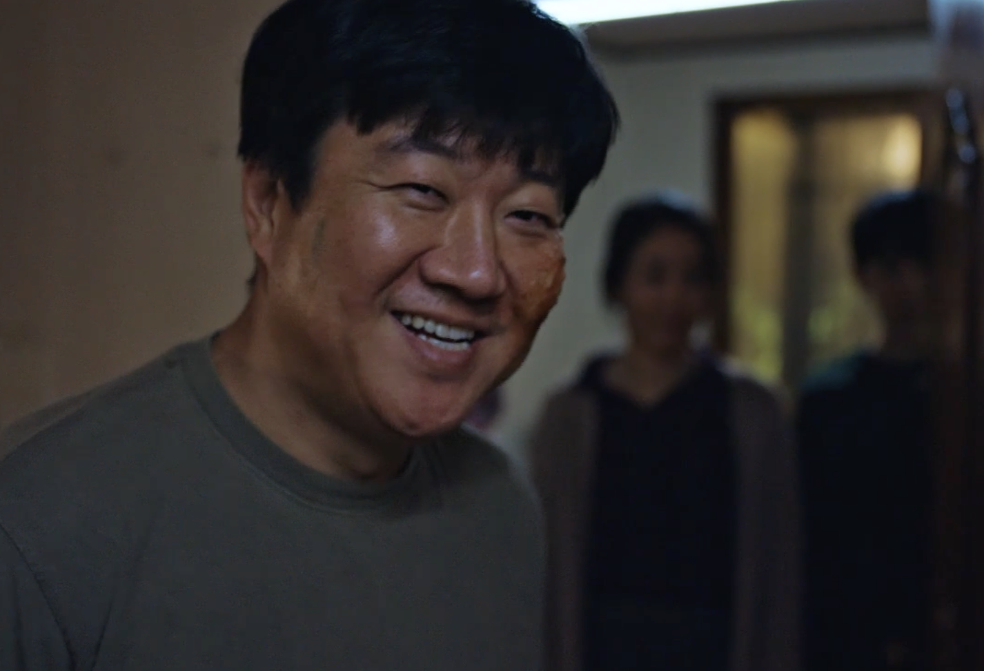 인상 좋게 웃고 있지만 얼굴에 흉터가 있는 남자. 귀신처럼 서 있는 여자와 소년 얼굴에도 흉터가 있다.