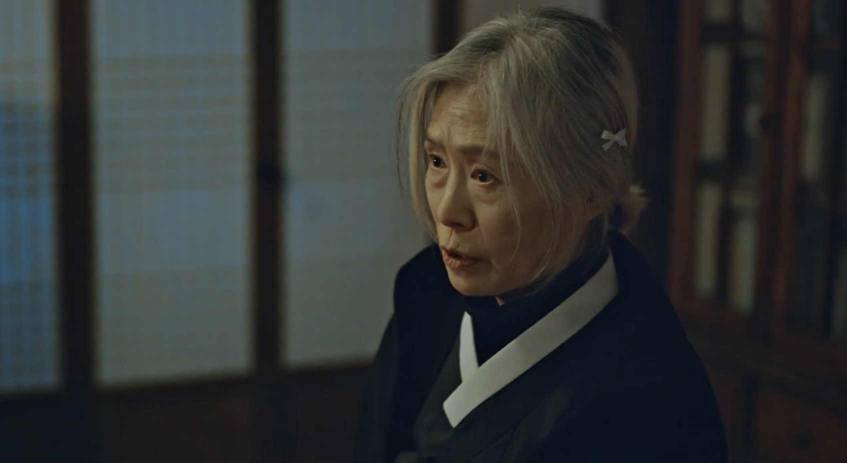유품을 들고 나오는 산영에게서 댕기를 빼앗아 바닥으로 내동댕이 친다. 엄마가 힘들어하자