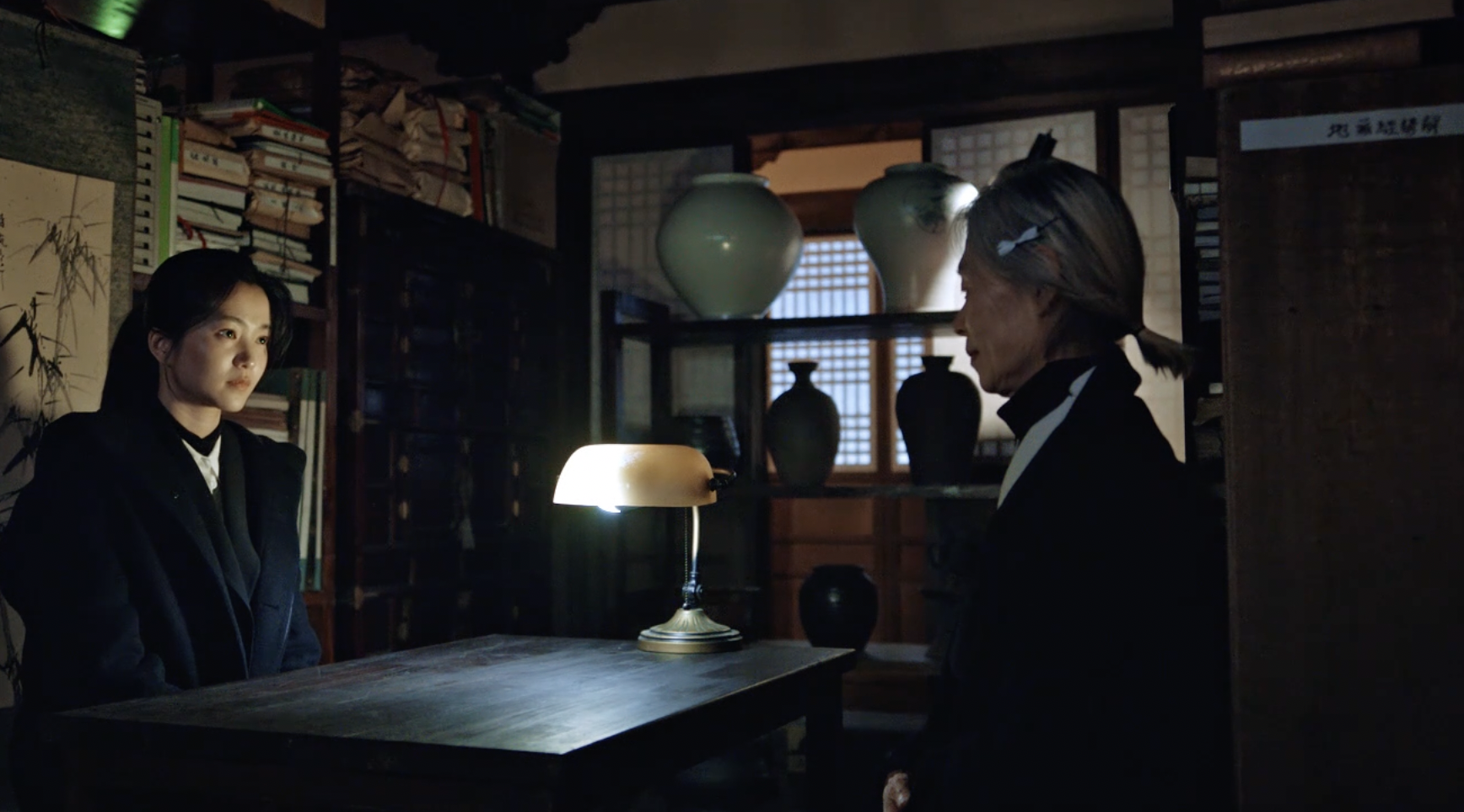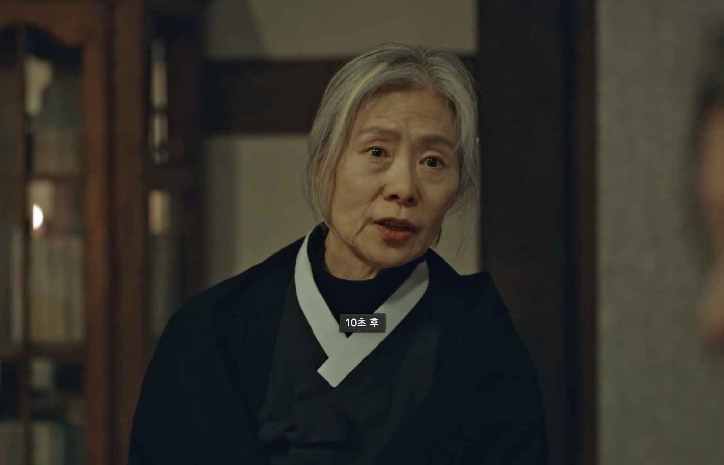 유품을 들고 나오는 산영에게서 댕기를 빼앗아 바닥으로 내동댕이 친다. 엄마가 힘들어하자