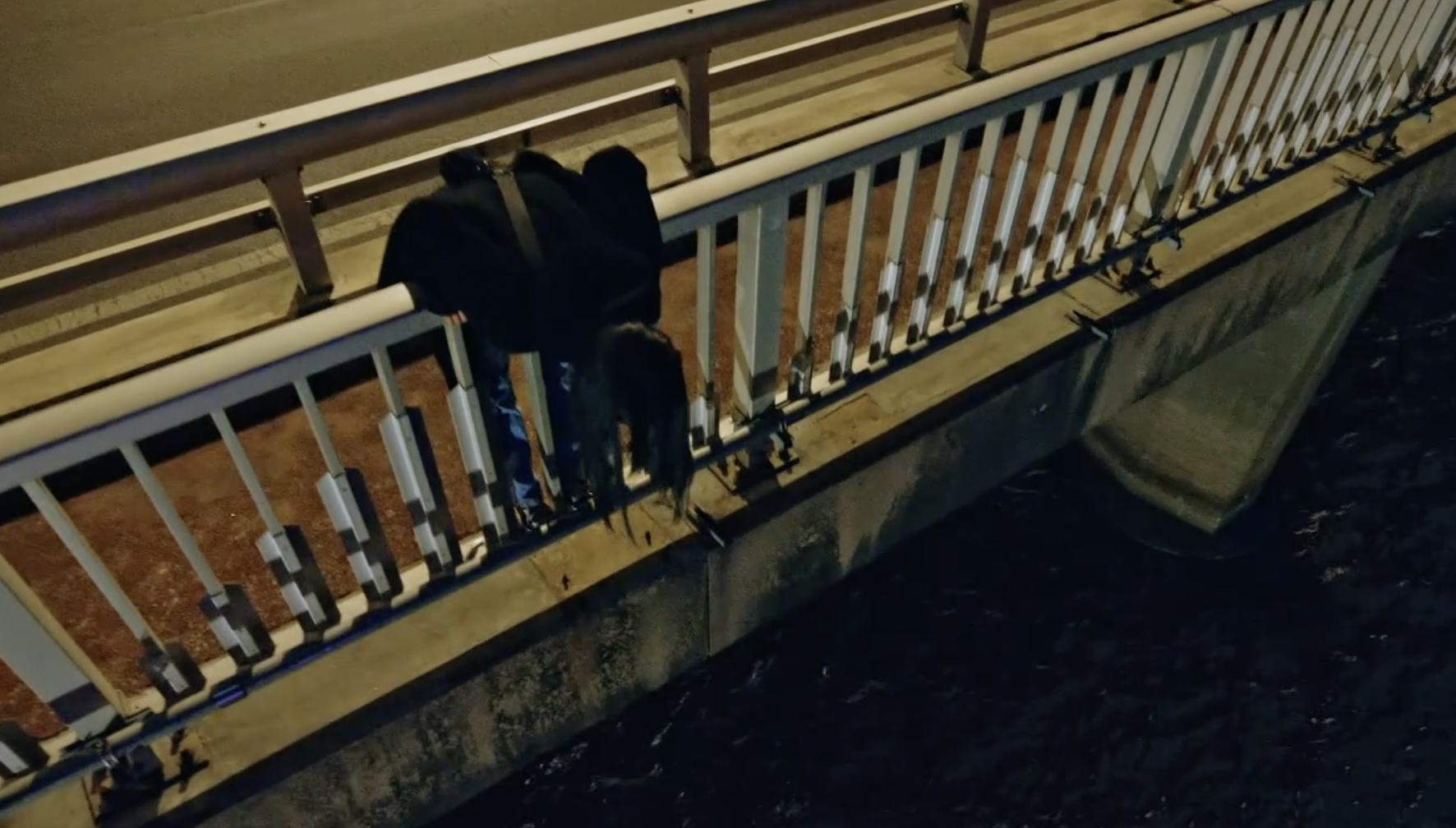 이상한 그림자의 움직임이 보이더니 한 남자가 차를 세우고 홀린듯이 강물에 풍덩 뛰어든다.