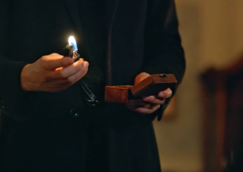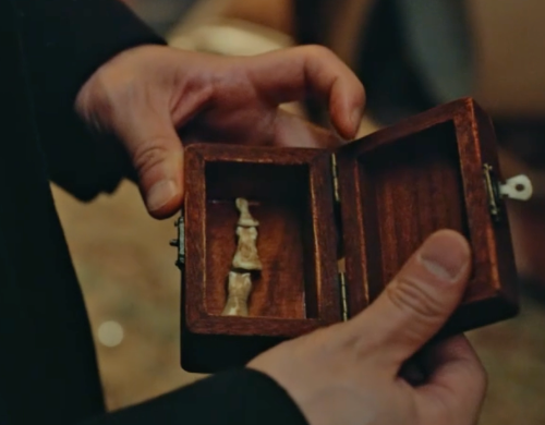 액자뒤에서 손가락이 든 상자를 꺼내는 악귀.