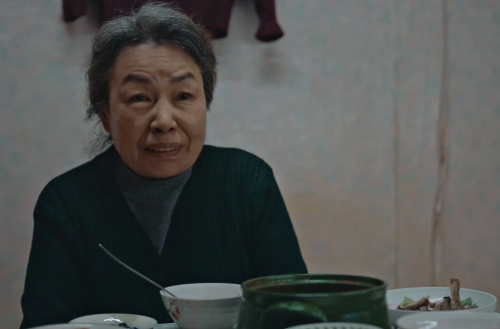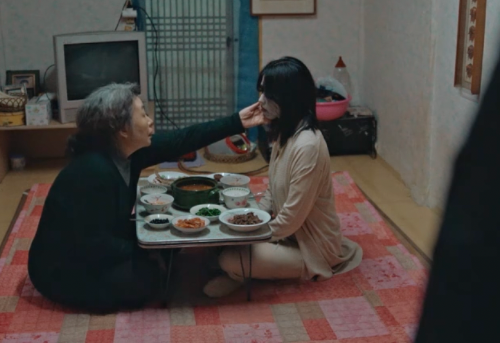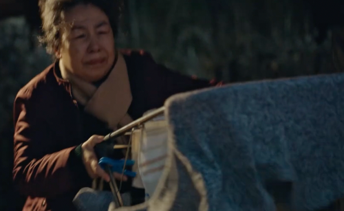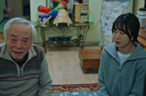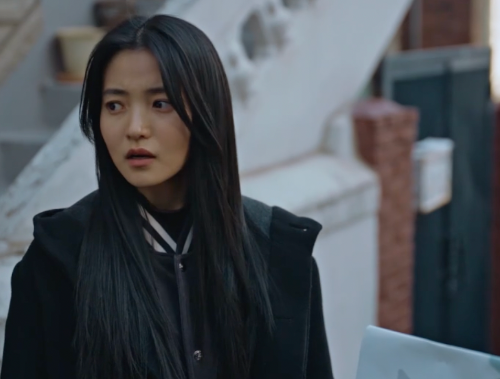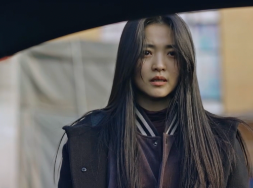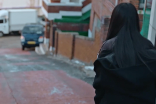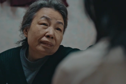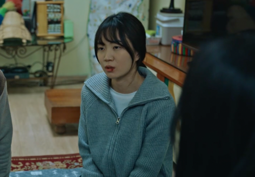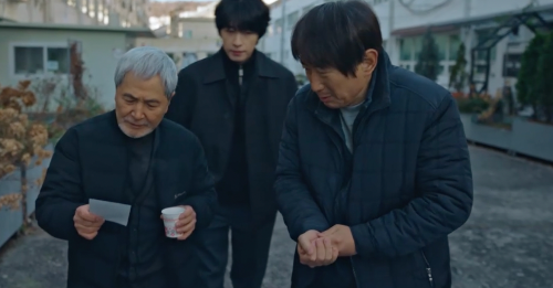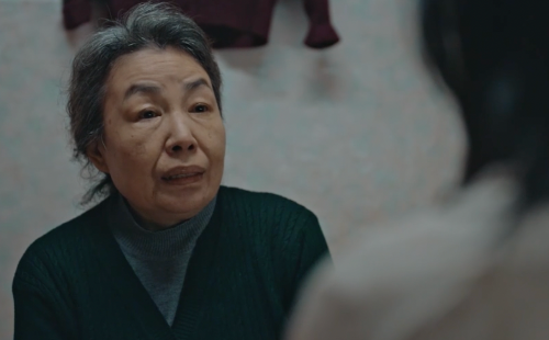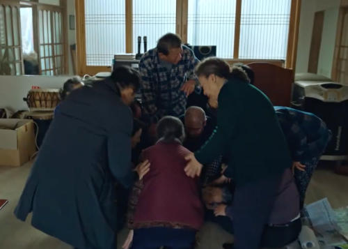 땅에 떨어진 걸 줍는데 어떤 손이 밀어버렸다. 넘어지는 할머니를 구하는 산영.