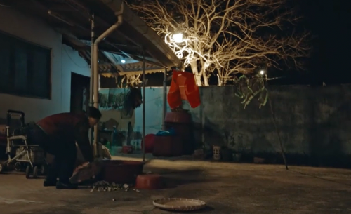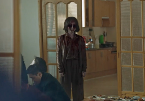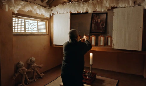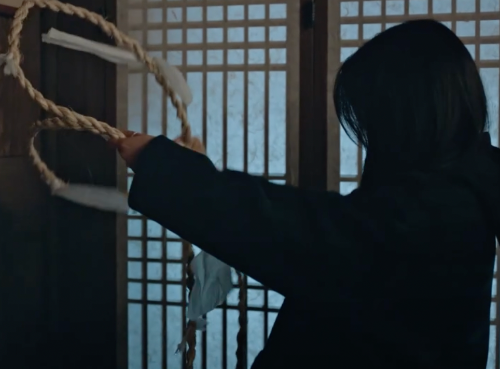 스스로 목을 메고 라이터로 불을 낸 후 손을 내린다. 어린 해상의 뒤에서 지켜보는 듯한 악귀의 형체.