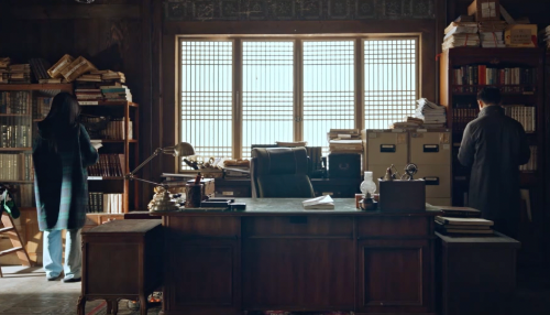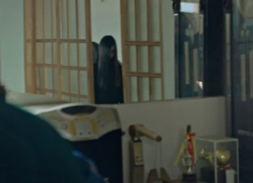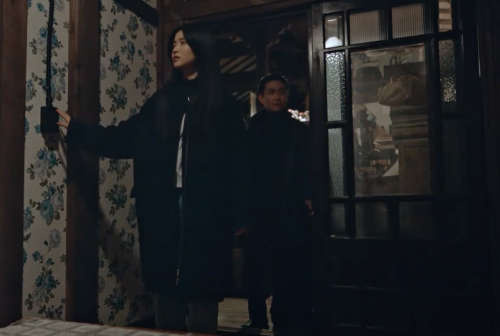 건물 안에서 소리가 나자 전화끊고 들어가는 산영과 해상.