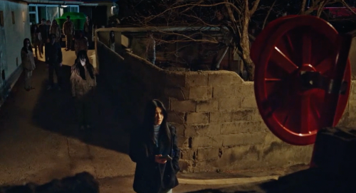 염 교수를 알아보며 다가온다. 이장은 산영을 보며 당제를 보러 왔다고 넘겨짚는다. 맞다는 듯 어색하게 웃는 산영.