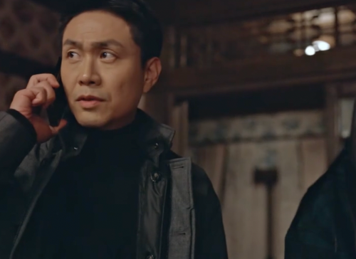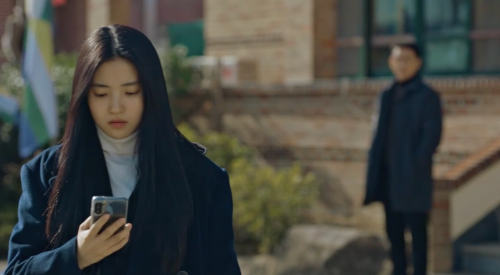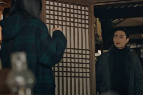건물 안에서 소리가 나자 전화끊고 들어가는 산영과 해상.