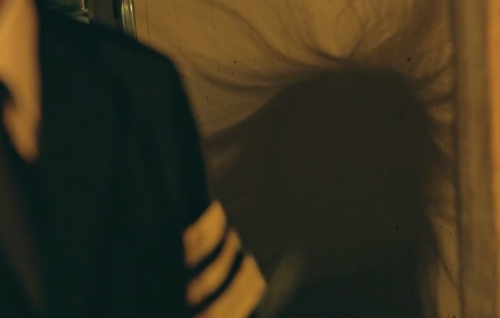 스스로 목을 메고 라이터로 불을 낸 후 손을 내린다. 어린 해상의 뒤에서 지켜보는 듯한 악귀의 형체.