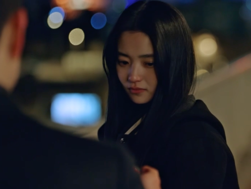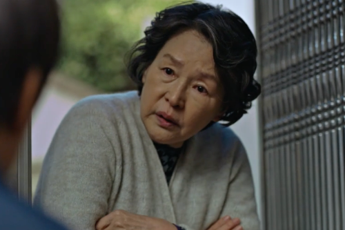 땅에 떨어진 걸 줍는데 어떤 손이 밀어버렸다. 넘어지는 할머니를 구하는 산영.