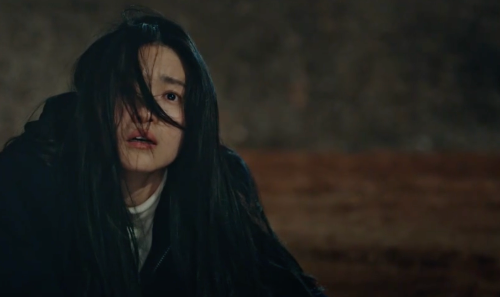 급하게 객귀들에게서 도망치는 산영. 그러다 넘어진다.