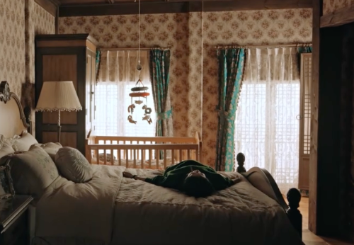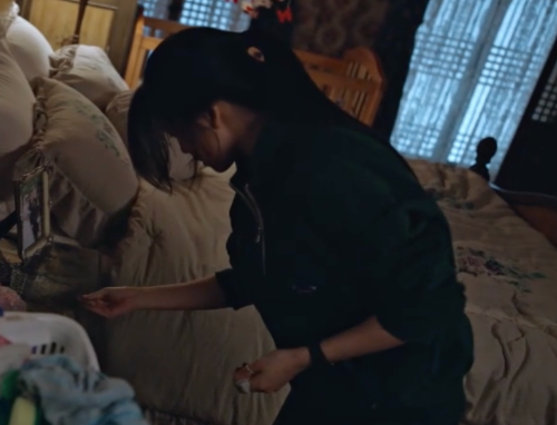 잠에서 깬 산영. 문이 열려 있다. 엄마가 죽었을가 걱정되서 들어갔더니 자고 있는 엄마.