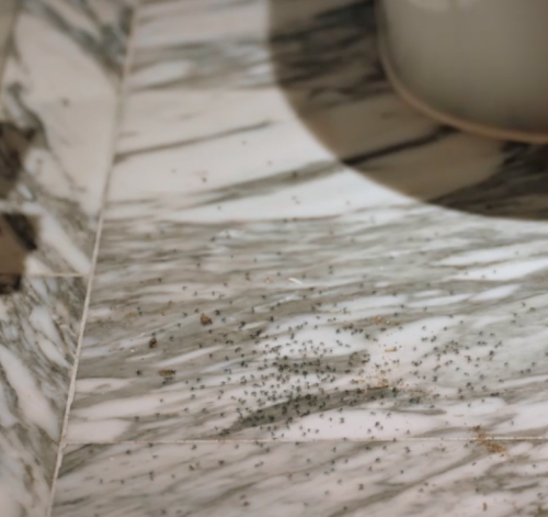 화장실 안에 꽃병이 있는 걸 발견하고 물을 끼얹는다.