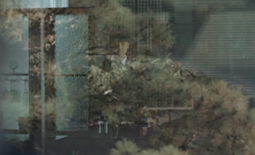 유리창에 움직이는 우진의 모습.