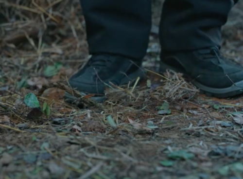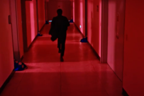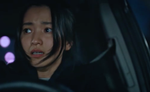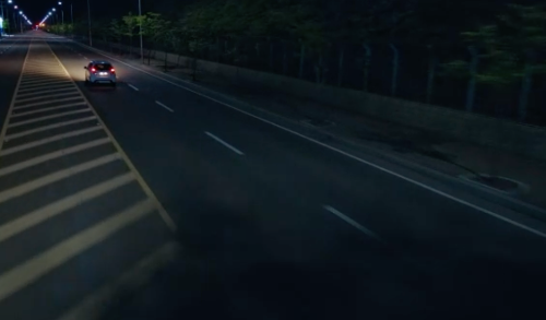 도로가 신호를 기다리다가 자신의 그림자를 보는 산영. 다행히 악귀는 안 보인다.