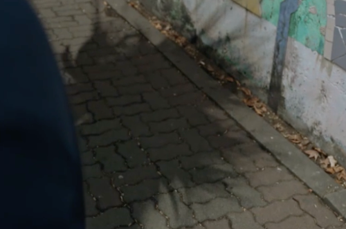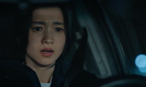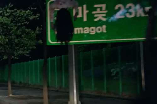 도로가 신호를 기다리다가 자신의 그림자를 보는 산영. 다행히 악귀는 안 보인다.